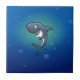 Smiling Funny Shark on Blue Background Tile