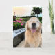 Show someone your appreciation with this cute card! Design features a photograph of a smiling golden retriever dog outside in front of colourful flowers, as the sun is setting. Customizable text reads, "Thank You, Your Thoughtfulness is Appreciated."