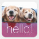 Add a little golden cheer to your life with these cute stickers! Design features a photograph of two happy golden retriever dogs who are sticking their heads out of a car window. Text says, "Hello!"
