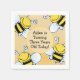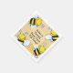 Add the name and age of a birthday boy or girl with custom text in a round border surrounded by an illustration of smiling honey bees on a golden background.