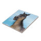 3D digital render of a cute smiling grulla horse with blue eyes on blue sky background. Perfect gift for everyone who loves fun and laughs