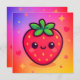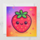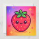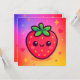 Smiling Kawaii Strawberry on Pastel Gradient Backg