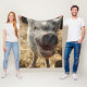 Cuddle up with this adorable smiling mini pig blanket.