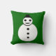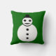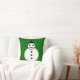 Ce coussin impressionnant a un bonhomme de neige blanc et souriant avec des boutons noirs et un chapeau haut. Il a l'air d'un agent cool et aimerait vous aider à répandre la joie de Noël cette année. L'arrière - plan est un vert festif.