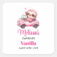 Candle, soap, kitchen or other crafting product stickers with a whimsical illustration. A pink sloth driving around in a pink convertible. Adorable.