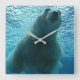 SMILING POLAR BEAR SQUARE WALL CLOCK