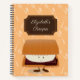A recipe notebook with a smiling s'more cartoon character on a background of repeating cooking utensils. The cover shows the words "Elizabeth's Recipes" and those words can be customized.