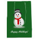Smiling and cute, this little snowman brings gifts for Christmas! This colourful, double sided gift bag is perfect for small to medium size gifts. This design is also available as a postcard, sticker, gift wrapping paper and coffee mug!