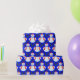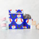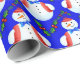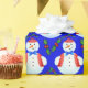 Make any gift more special with this custom and one of a kind wrapping paper featuring smiling snowmen and leaves of Holly on a blue background.