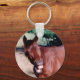 A laughing standardbred horse is displayed on a key chain, with the word "Smile".