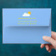 Send out your invitations and cards in style with this cute custom envelope that features a hand drawn repeating pattern with smiling suns and a blue cloudy sky on the inside as well as a custom printed return address on the top flap. The return address is customizable. To edit the text, click "personalize this template". There is a cloud and sun adorning the back above the return address printed in a yellow font.
