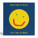 A green-eyed yellow sun smiling on a blue background. There are two places on the front for you to customize by adding your own text and another on the spine. You may change the colour of both the text and the background.
