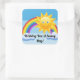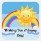 Cute picture of a smiling sun with a rainbow and clouds is featured on this square sticker. With message, "Wishing You A Sunny Day"! A colourful greeting to send those important cards, letters and packages with. Great for decorating, scrapbooks and more!