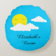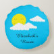 Smiling Sun with Clouds: Turquoise Round Pillow