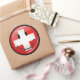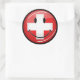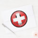 Show off your homeland pride for the beautiful mountainous country of Sweden with this glossy round smiling Swiss flag.