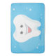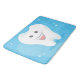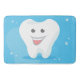 A fun and bright blue bathmat with a smiling tooth on it, great for kids, dentists and orthodontics. A great addition for the bathroom at a dentist's office.