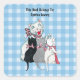 This square sticker bookplate label is a light blue and white plaid pattern with a smiling white mother cat sitting with her three cute kittens who are black, white, and grey all wearing pink ribbons.  Customize your text  with the templates.