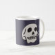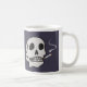 Enjoy a hot cup of joe with a bit of twisted humour. Skull with lit cigarette that appears to glow against a deep purple background. Other side reads, "Smokin' Hot".