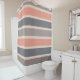 This stylish shower curtain features trendy stripes in dark and light grey, coral, and beige. A great way to add colour to a neutral bathroom!