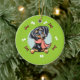 Smooth Black Tan Dachshund Christmas Wreath Ceramic Ornament