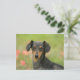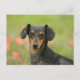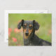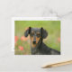 Smooth-haired Miniature Dachshund Puppy Looking at Postcard