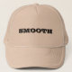A khaki-colored trucker hat that says 'SMOOTH' on the front. You can also design your own with your own photographs, artwork, words and graphics to create a unique all American trucker hat!