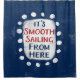 Bold text reading "Smooth Sailing From Here" is centred against a navy blue background. The red and blue text sits on a white rectangle with large textured white dots around it, providing a playful contrast against the solid colour backdrop.