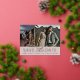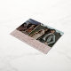 A modern save the date postcard designed to accommodate two engagement photos aligned side by side. "Save the date" appears beneath in rose gold foil block and script lettering, with your names, wedding date and wedding location beneath. Postcards reverse to show additional save the date details, including your wedding website, with your return address and space for recipient addressing.