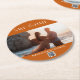Smooth Script Photo QR Code Save the Date Round Paper Coaster