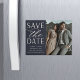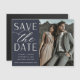 A modern save the date magnet designed to accommodate your favourite vertical or portrait oriented engagement photo. "Save the date" appears alongside your photo in chic block and script lettering, with your names, wedding date and wedding location beneath.
