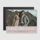 A modern save the date magnet designed to accommodate a single horizontal or landscape oriented engagement photo. "Save the date" appears beneath in chic block and script lettering, with your names, wedding date and wedding location beneath, along with your wedding website or additional details.