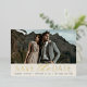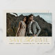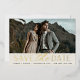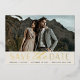 A modern save the date card designed to accommodate your favourite horizontal or landscape oriented full-bleed engagement photo. "Save the date" appears beneath your photo in gold foil block and script lettering, along with your names, wedding date and wedding location. Personalize the back with additional details, such as your wedding website.