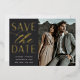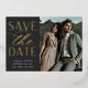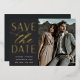 A modern save the date card designed to accommodate your favourite vertical engagement photo. "Save the date" appears alongside your photo in gold foil block and script lettering, with your names, wedding date and wedding location beneath. Personalize the back with additional details, such as your wedding website.