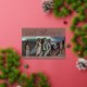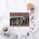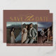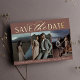 A modern save the date card designed to accommodate three vertical engagement photos aligned side by side. "Save the date" appears beneath your photos in gold foil block and script lettering, along with your names, wedding date and wedding location. Personalize the back with additional details, such as your wedding website.
