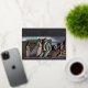 A modern save the date card designed to accommodate three vertical engagement photos aligned side by side. "Save the date" appears beneath your photos in rose gold foil block and script lettering, along with your names, wedding date and wedding location. Personalize the back with additional details, such as your wedding website.