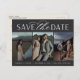 A modern save the date postcard designed to accommodate three engagement photos aligned side by side. "Save the date" appears beneath your photos in chic block and script lettering, with your names, wedding date and wedding location beneath. Postcards reverse to show additional save the date details, including your wedding website, with your return address and space for recipient addressing.