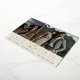 A modern save the date card designed to accommodate two engagement photo (one vertical and one horizontal, aligned side by side). "Save the date" appears beneath your photos in gold foil block and script lettering, along with your names, wedding date and wedding location. Personalize the back with additional details, such as your wedding website.