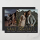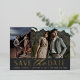 A modern save the date card designed to accommodate two engagement photo (one vertical and one horizontal, aligned side by side). "Save the date" appears beneath your photos in gold foil block and script lettering, along with your names, wedding date and wedding location. Personalize the back with additional details, such as your wedding website.