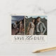 A modern save the date postcard designed to accommodate two engagement photos aligned side by side. "Save the date" appears beneath your photos in chic block and script lettering, with your names, wedding date and wedding location beneath. Postcards reverse to show additional save the date details, including your wedding website, with your return address and space for recipient addressing.