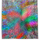 Smooth spiral in brightly coloured patches overlapping and causing a slight puffing effect resembling the shape of an open flower.
