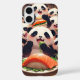 Funny anime phone case featuring a chibi panda devouring huge sushi with a surprised face. Ideal for anime fans who love cute animals, humour, and kawaii food illustrations.