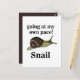 Snail Going At My Own Pace Funny Snail Postcard original design by Nisha Prabhu. Embrace your inner snail with this whimsical postcard, perfect for those who march to the beat of their own drum! Featuring a charming illustration of a cheerful snail, this delightful design embodies the mantra 'Going at My Own Pace.' Whether you're sending a note to a friend or keeping it on your desk as a reminder to take life slow, this postcard radiates positivity and humour. It’s just right for snail mail enthusiasts and anyone who appreciates the beauty of a leisurely journey. Share a smile, spread some joy, and remember – it's not the destination, but the delightful journey that counts!