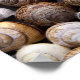 This design features an image of snail shells arranged in rows and columns. The particular type of snail that sheds these shells is the "Arianta arbustorum", sometimes known in English as the "copse snail". The shells are beautiful shades of light and dark brown.