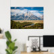 This photo features Grand Teton National Park made famous by the overlook is easily accessible from the roadside parking lot located nine miles north of Moose on the main highway.