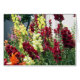 Des snapdragons gras et colorés (Antirrhinum majus 'Rocket Mix') se démarquent vraiment. Les couleurs sont le bronze, le citron, l'orchidée, le rose, le rouge, le rose, le blanc et le jaune. Remarquez le lis de tigre orange dans le coin inférieur gauche.
