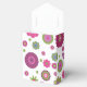 Custom snazzy abstract purple and green flower pattern on favour boxes with "thank you" text (option to delete text or customize with your own).