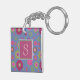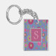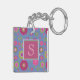 Snazzy Pink and Blue Flower Pattern Monogram Keychain