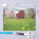 Snazzy Red Barn Posing With Pink Trees and Flowers Tissue Paper