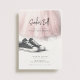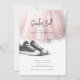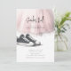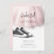 Invite your guests to your sneaker ball with this sweet party invitation featuring a light pink tulle skirt and black and white sneakers. This illustration is AI generated.