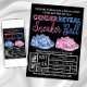 Sneaker ball gender reveal invitation with cute pink and blue bling baby sneakers on a black background. Simply add your event details.